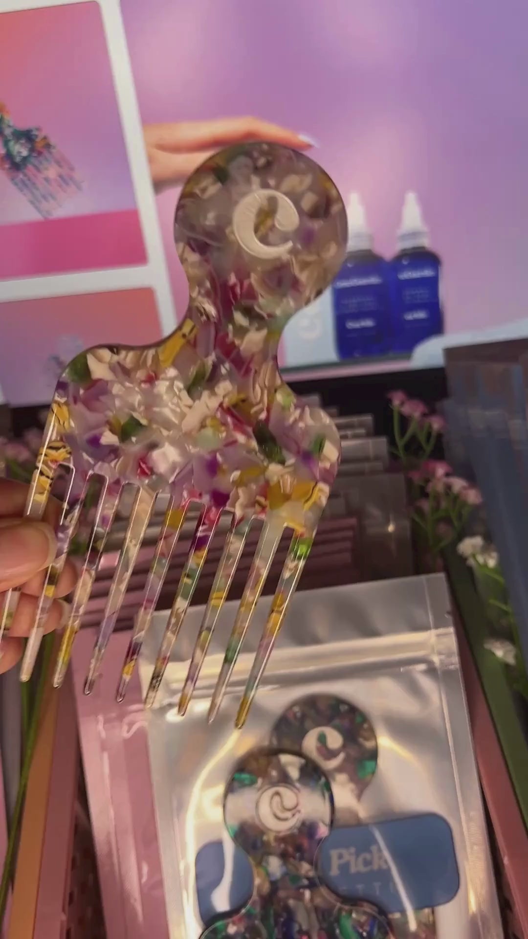 A Detangling Hair Pick made for textured hair. Perfect for root-lifting, shaping, and gentle detangling.